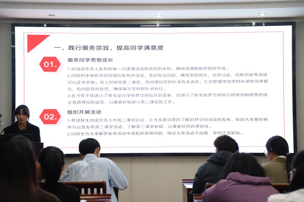为贯彻落实《关于推动高校员工会(研究生会)深化改革的若干意见》有关要求,深入学习新时代第二次全国教育大会讲话内容和主旨精神,总结bevictor韦德国际员工组织2024年工作成果,高效推进各员工组织下阶段工作计划。12月15日晚,2024年员工组织负责人述职评议在数学楼315会议室开展。公司分团委副书记叶清林,员工会副主席王世龙,新媒体中心主任韩朝阳出席本次会议。各员工组织负责人及各班班长、团支书参加会议。本次活动由公司分团委副书记李璞主持。