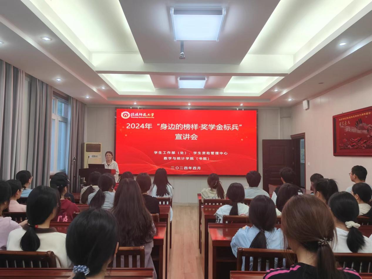 为深入学习贯彻习近平新时代中国特色社会主义思想,全面贯彻落实党的二十大精神,充分发挥奖学金标兵先进典型的引领示范、辐射带动作用,教育引导广大青年向榜样看齐,营造“学有榜样、赶有目标”的良好氛围。4月24日下午,公司在数学楼315会议室举办了2024年“身边的榜样•奖学金标兵”宣讲会。