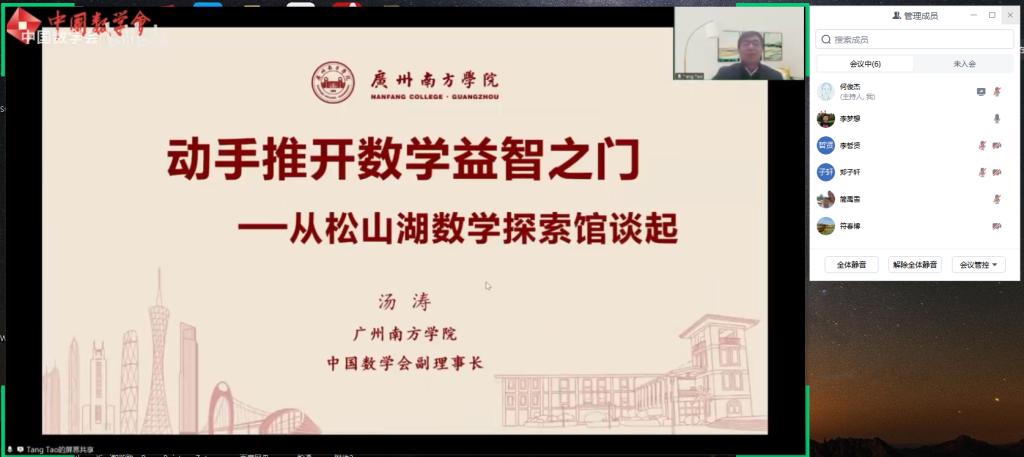 11月9日,指导老师播放汤涛院士“动手推开数学益智之门——从松山湖数学探索馆谈起”的报告视频。视频里,汤涛院士倡导“动手学数学”理念。报告后,“数学与艺术的融合”研讨主题点燃了学员的热情,员工们结合视频案例与自身经历积极畅谈自己的感悟。