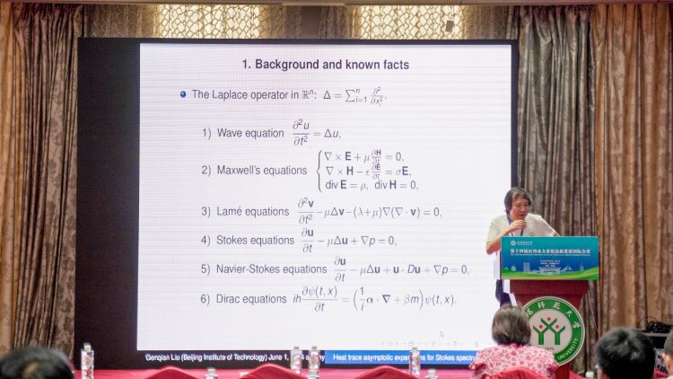 北京理工大学的刘跟前做了题目为《The geometric invariants forthe spectrumof the Stokesoperator》的报告。