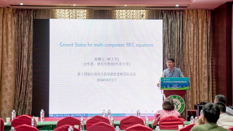 三峡大学的陈鹏做了题目为《Ground state solutions for multi-component BEC equations》的报告。