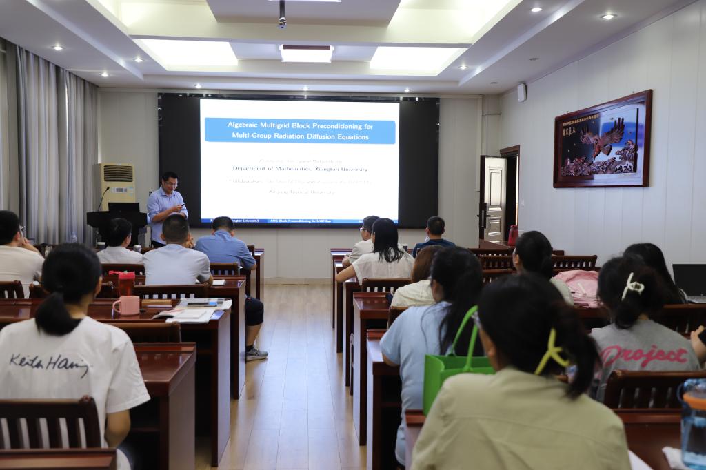 6月16日上午,应bevictor韦德国际邀请,湘潭大学岳孝强教授作了题为《多群辐射扩散问题的代数多重网格块型预条件算法》的学术报告。报告会由李世顺教授主持,部分老师及研究生聆听了此次报告。