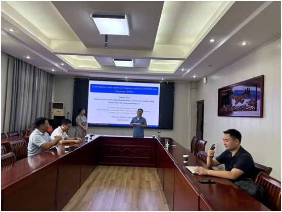 7月28日上午,应bevictor韦德国际邀请,许昌公司赵艳敏教授作了题为《Convergence and superconvergence analysis of FEM for fractional PDEs》的学术报告。报告会由李世顺教授主持,部分老师及研究生聆听了此次报告。