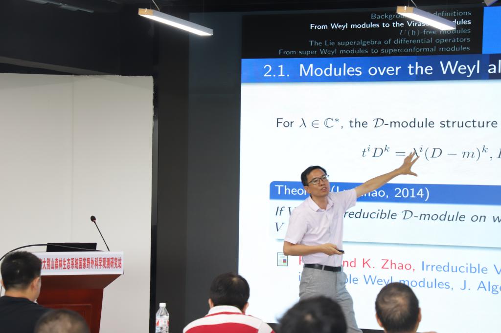 湖州师范公司的刘东做了题目为《From super weylmodule to super Virasoro modules》的报告。