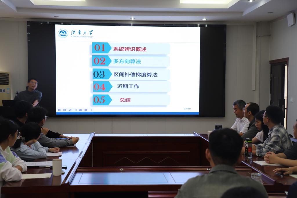 报告中,陈教授首先简要介绍了系统辨识中的两种常用算法:最小二乘算法和随机梯度算法。通过将两种算法放在统一的框架下进行考虑,每次迭代时选择多个正交方向,提出了多方向迭代算法。然后,针对系统中存在大量输出数据丢失的问题,受卡尔曼平滑算法的启发,在前向估计出丢失输出数据的基础上,再利用可测的数据对先验估计输出进行反向补偿,提出了区间补偿梯度算法,提高了算法的估计精度。最后,陈教授结合机器学习中的一些热点问题,介绍了最近的研究进展,并给出了其在图像处理中的应用。