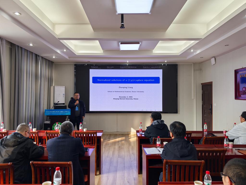 1场报告由山西大学的梁占平教授作了题目为《Normalized solutions of a (2,p)-Laplace equation》的学术报告。