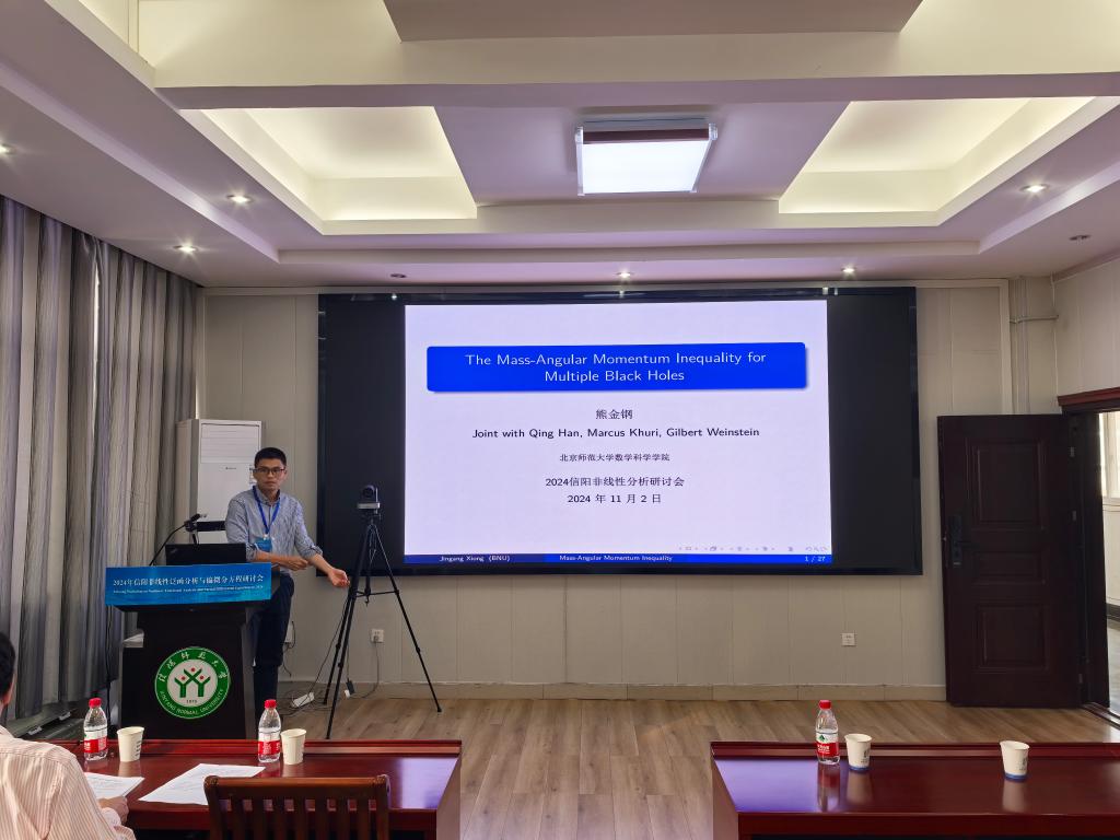1场报告由北京师范大学的熊金钢教授作了题目为《The Mass-Angular Momentum Inequality for Multiple Black Holes》的学术报告。
