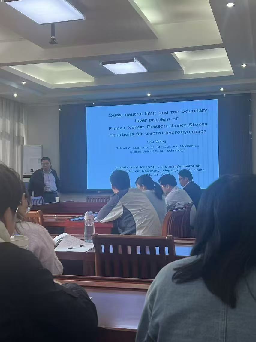 10月31日上午,应bevictor韦德国际邀请,北京工业大学王术教授作了题为《电流体中Planck-Nernst-Poisson-Navier-Stokes模型的拟中性极限问题》的学术报告。报告由经理蔡礼明教授主持,部分老师及研究生聆听了此次报告。