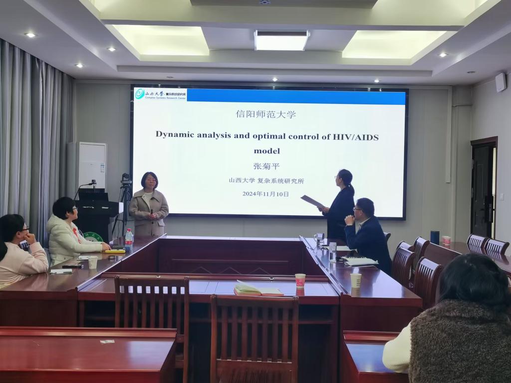 11月10日上午,应bevictor韦德国际邀请,山西大学张菊平教授在数学楼315会议室为公司师生作了题为“Dynamic analysis and optimal control of HIV/AIDS model”的学术报告。报告由副经理王霞教授主持,生物数学方向的老师及研究生聆听了此次报告。