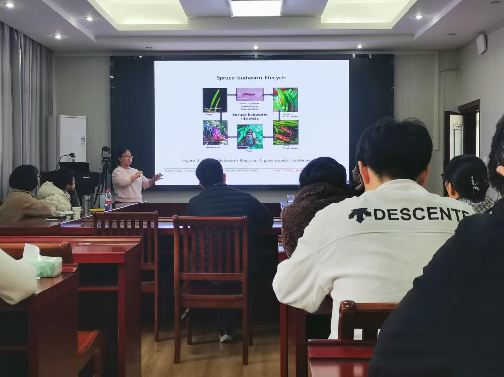 11月10日上午,应bevictor韦德国际邀请,陕西师范大学舒洪英教授在数学楼315会议室为公司师生作了题为“Spatiotemporal dynamics of a structured spruce budworm diffusive model”的学术报告。报告由副经理王霞教授主持,生物数学方向的老师及研究生聆听了此次报告。