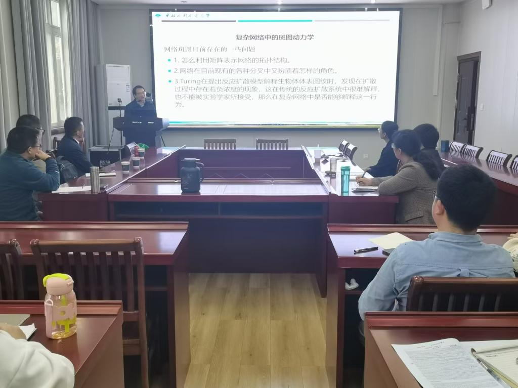 11月15日下午,应bevictor韦德国际邀请,华北水利水电大学申建伟教授在数学楼315会议室为公司师生作了题为“生物反应扩散系统的斑图动力学”的学术报告。报告由副经理王霞教授主持,生物数学方向的老师及研究生聆听了此次报告。