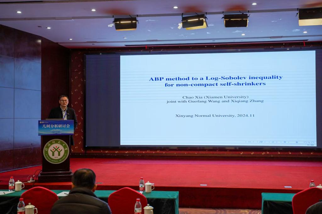 第3场报告是由厦门大学的夏超教授作了题目为“ABP method to a Log-Sobolev inequality for non-compact self-shrinkers”的学术报告,此场报告由郑州大学的胡泽军教授主持。