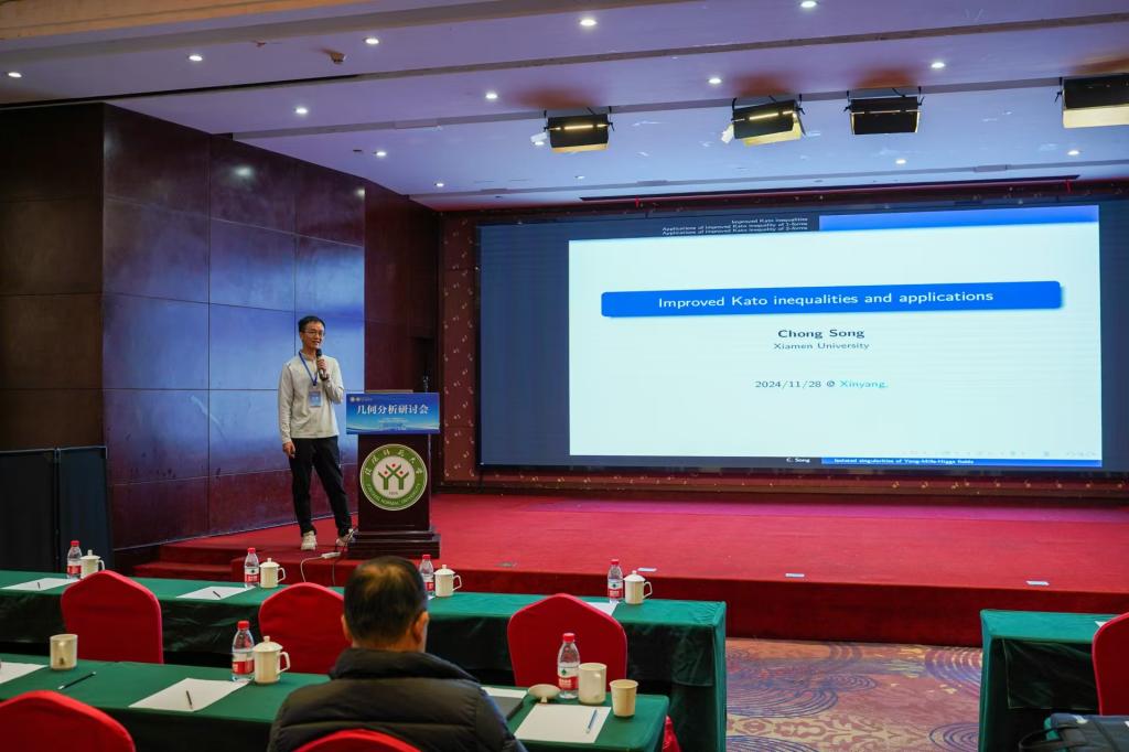 第2场报告是由厦门大学的宋翀教授作了题目为“Improved Kato inequalities and applications”的学术报告,此场报告由中山大学的袁伟教授主持。