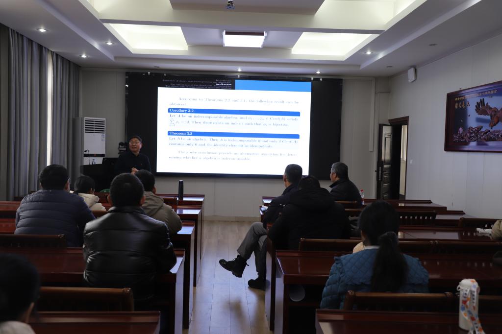 报告会结束后,陈老师针对师生提出的问题作了详细的解答并进行了热烈的讨论。此次学术报告会既开阔了大家的学术视野,又激发了大家对(二次)代数的直和分解的关注和思考。(何佰英供稿,韩英波审核)