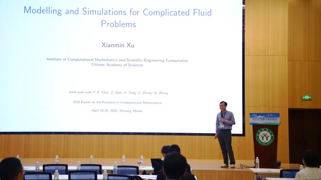 第6场由中国科公司数学与系统科学研究院许现民研究员作了题目为《Modelling and Simulations for complicated fluid problems》的学术报告。(李世顺供稿、严辉银审核、韩英波终审)