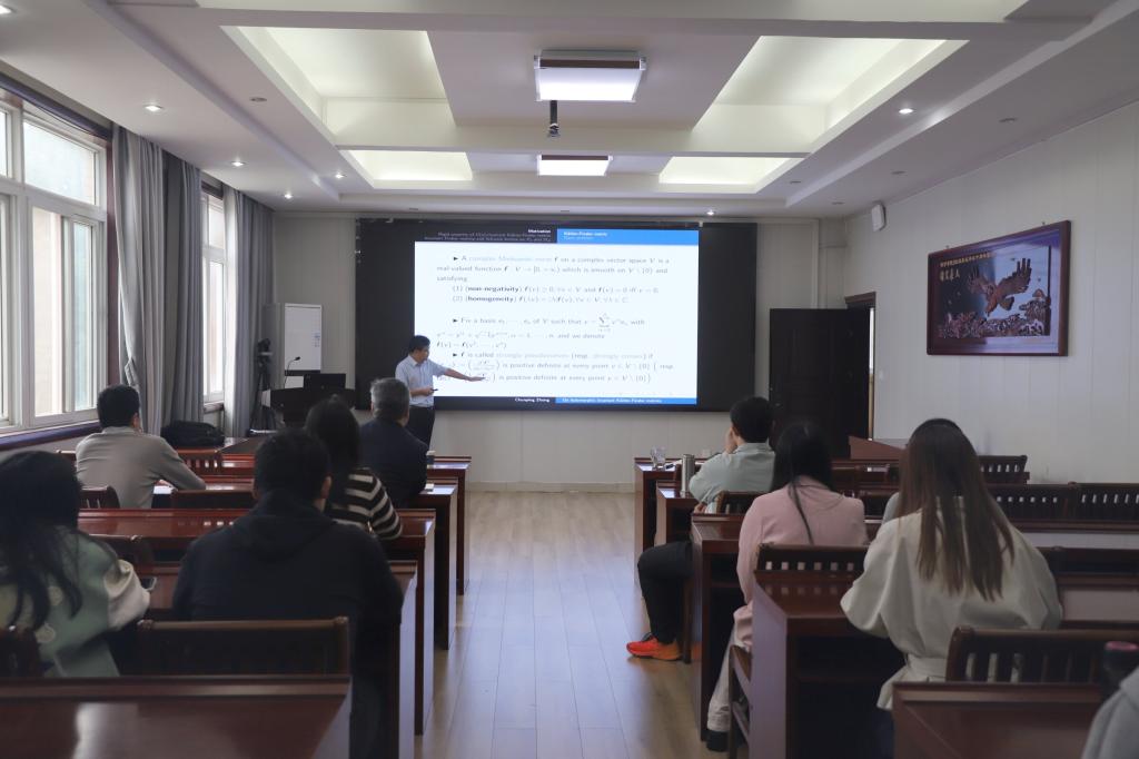 报告中钟教授首先介绍了多复变几何函数论中的全纯不变度量,它们都是自然的复芬斯勒度量,接着介绍了单位超球、单位多圆柱和四类典型域上全纯不变复芬斯勒度量的刻画,同时给出了这些齐性芬斯勒流形上的施瓦茨引理,相关结果表明陆常数既是解析不变量也是几何不变量。