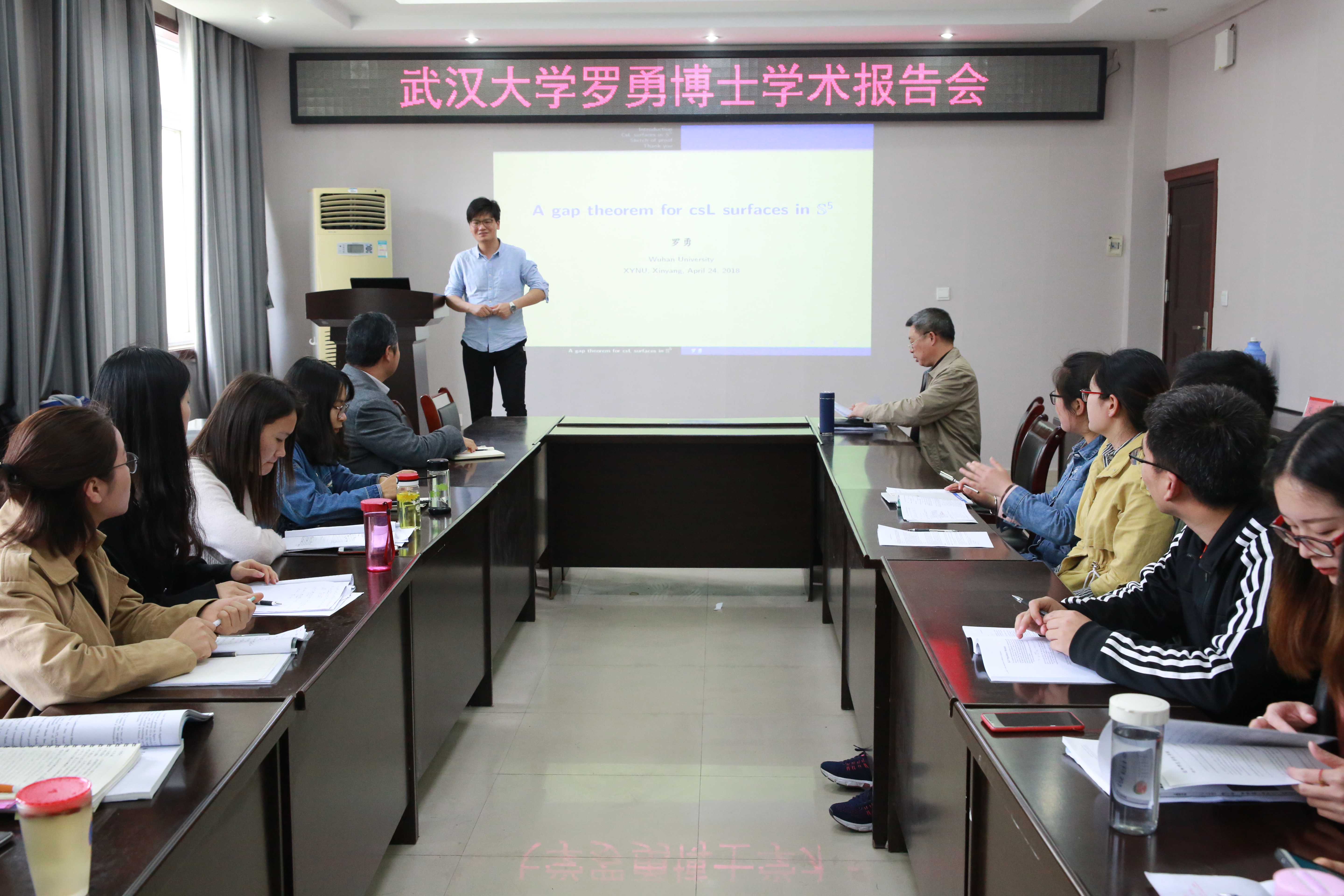 2018年4月24日下午,应bevictor韦德国际邀请,武汉大学罗勇博士在数学公司院学术报告厅作了题为“ A gap theorem for csl surfaces in five dimensional sphere”的学术报告,报告会由bevictor韦德国际经理胡余旺教授主持,该院的部分教师和研究生聆听了此次报告。