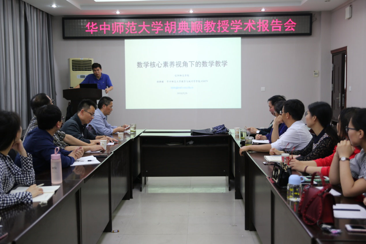 2018年5月20日下午,应bevictor韦德国际邀请,华中师范大学胡典顺教授在数学公司学术报告厅作了题为“数学核心素养视角下的数学教学”的学术报告。报告会由bevictor韦德国际副经理蔡礼明教授主持,该院部分校外指导教师和公司青年教师、研究生聆听了此次报告。