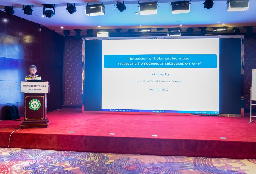 8月20日下午,上半场的报告由湖州师范公司刘太顺教授主持。河南大学关庄丹教授,作了题目为《Non-existence of S6 type of complex threefold in G2》的报告。讨论了关于复齐性空间的一些问题和进展。