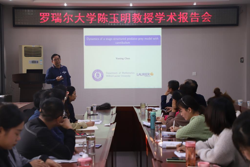 11月5日下午,应bevictor韦德国际邀请,加拿大罗瑞尔大学陈玉明教授在bevictor韦德国际学术报告厅作了题为“Dynamics of a stage-structured predator-prey model with cannibalism”的学术报告。报告会由bevictor韦德国际副经理蔡礼明教授主持,生物数学团队全体教师和部分研究生聆听了此次报告。