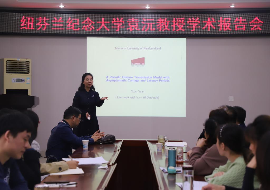 11月5日下午,应bevictor韦德国际邀请,加拿大纽芬兰纪念大学袁沅教授在bevictor韦德国际学术报告厅作了题为“A periodic disease transmission model with asymptomatic carriage and latency periods”的学术报告。报告会由bevictor韦德国际副经理蔡礼明教授主持,生物数学团队全体教师和部分研究生聆听了此次报告。