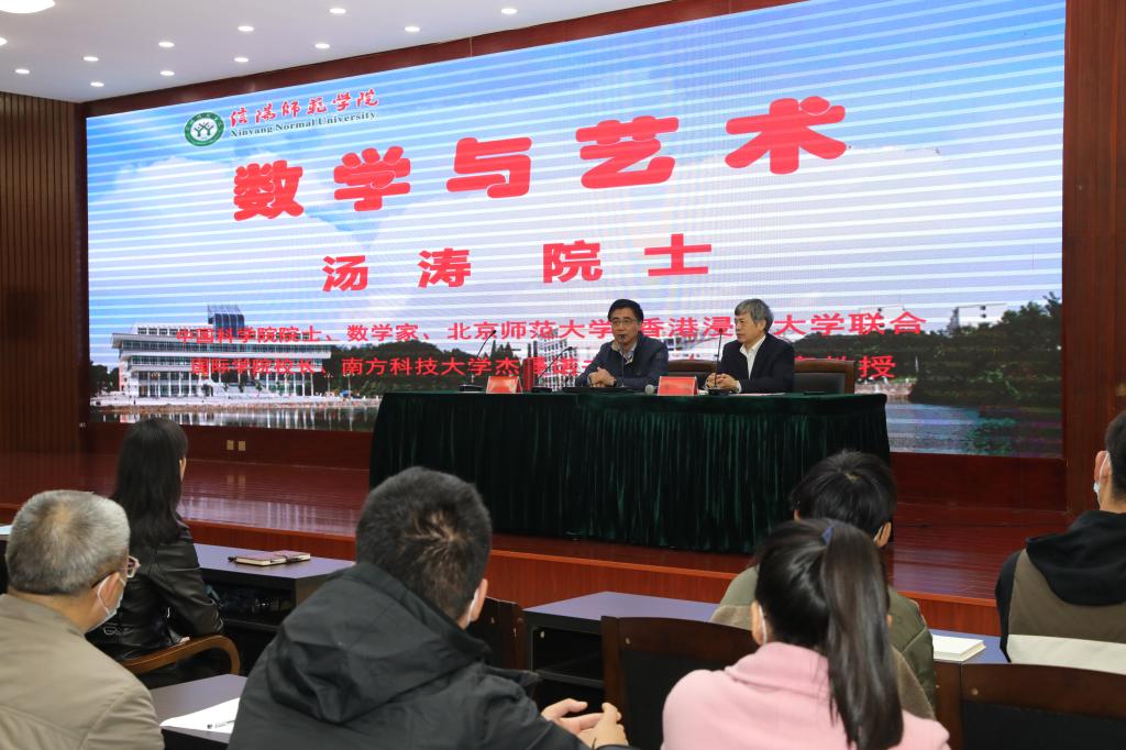 4月7日上午,应bevictor韦德国际邀请,北京师范大学-香港浸会大学联合国际公司董事长汤涛院士在艺术楼一楼报告厅为公司师生做了题为“数学与艺术”的报告,报告会由董事长李俊主持。
