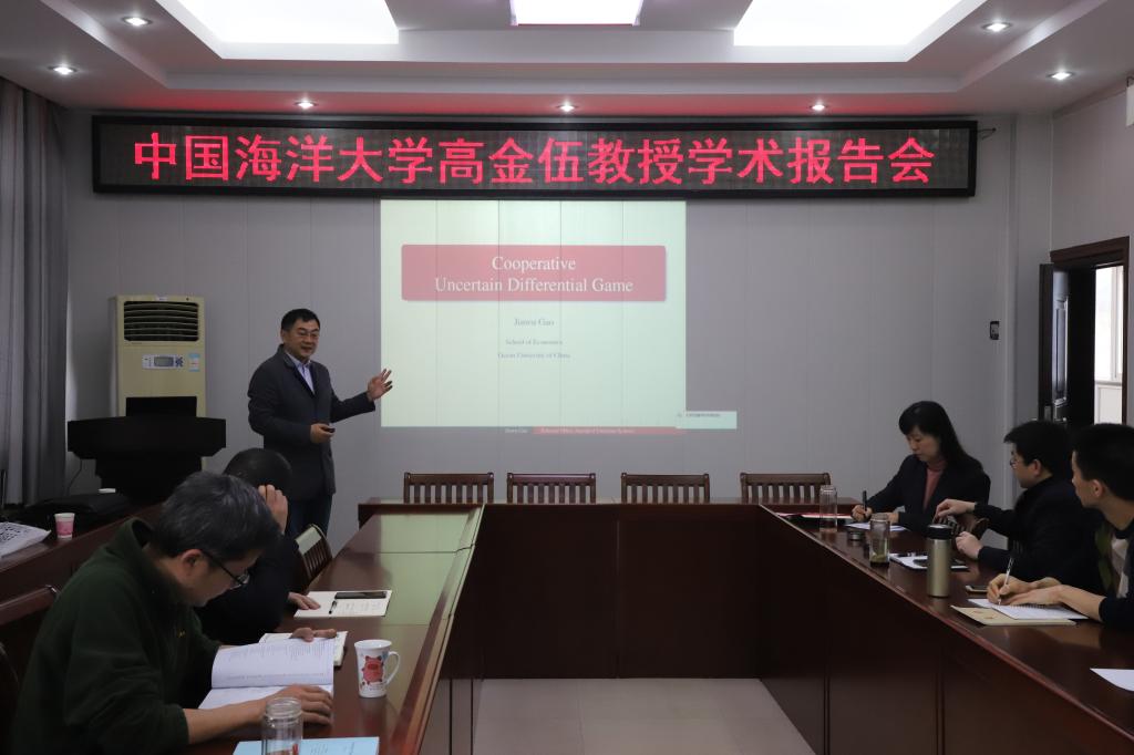 4月23日上午,应bevictor韦德国际邀请,中国海洋大学高金伍教授在公司学术报告厅做了一场题为《Cooperative uncertain differential game with transferrable payoffs》的学术报告。报告会由公司党委书记王娟教授主持,公司部分老师和研究生聆听了此次报告。