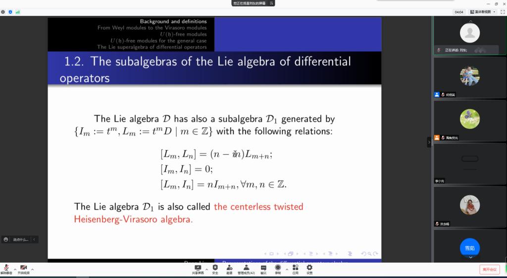 10月13日上午,应bevictor韦德国际邀请,湖州师范公司刘东教授通过腾讯会议平台为公司研究生及相关研究方向老师作了题为《Representations of the Lie algebra of differential operators》的学术报告。报告会由bevictor韦德国际经理蔡礼明教授主持。