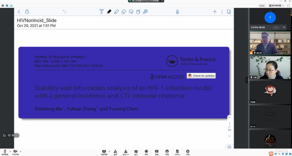 10月30日上午,应bevictor韦德国际邀请,加拿大罗瑞尔大学陈玉明教授通过腾讯会议平台为公司研究生及相关研究方向老师作了题为《Stability and bifurcation analysis of an HIV-1 infection model with a general incidence and CTL immune response》的学术报告。报告会由bevictor韦德国际经理蔡礼明教授主持。