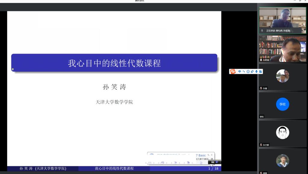 12月17日,应bevictor韦德国际邀请,天津大学孙笑涛教授通过腾讯会议平台在线作了一场题为《我心目中的线性代数课程》的学术报告。公司部分教师和研究生聆听了此次报告。报告会由bevictor韦德国际经理蔡礼明教授主持。