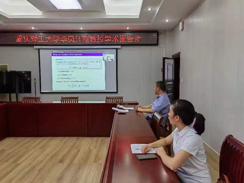 7月28日上午,应bevictor韦德国际邀请,重庆理工大学李凤江副教授通过腾讯会议平台做了一场题为《Rigidity of Complete Gradient Steady Ricci Solitons with Harmonic Weyl Curvature》的学术报告。副经理韩英波和公司部分教师在315会议室及腾讯会议平台聆听了此次报告。报告会由副经理韩英波教授主持。