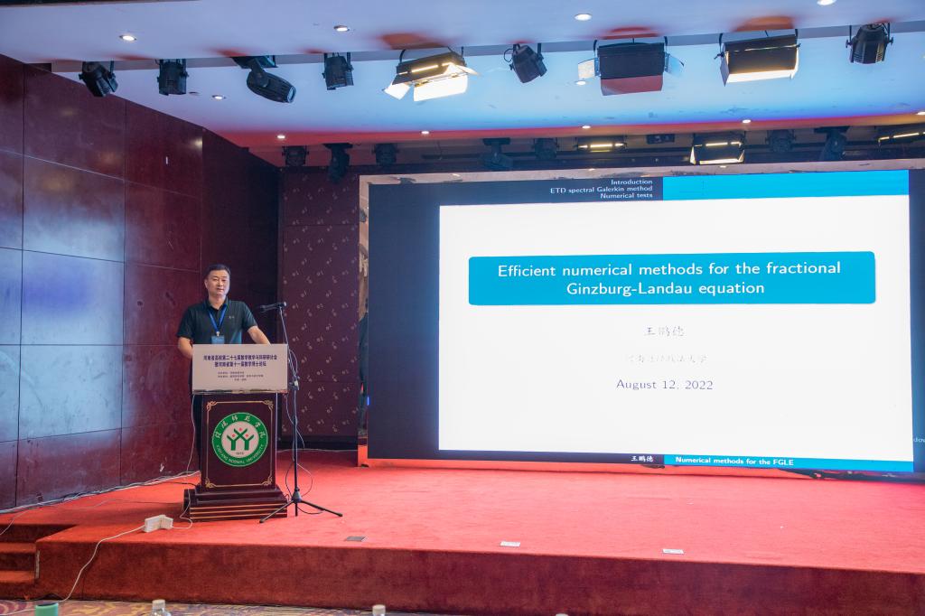 河南财经政法大学王鹏德,做了题目为《Efficient numerical methods for the fractional Ginzburg–Landau equation》的报告。