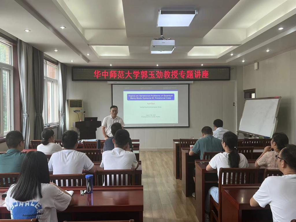 应bevictor韦德国际邀请,华中师范大学郭玉劲教授于8月18日下午在数学楼315报告厅进行了系列专题讲座,主题为“Topics on variational problems of quantum many-body system”。 讲座由经理蔡礼明主持,公司部分专业教师、研究生和高年级本科生参加了此次讲座。