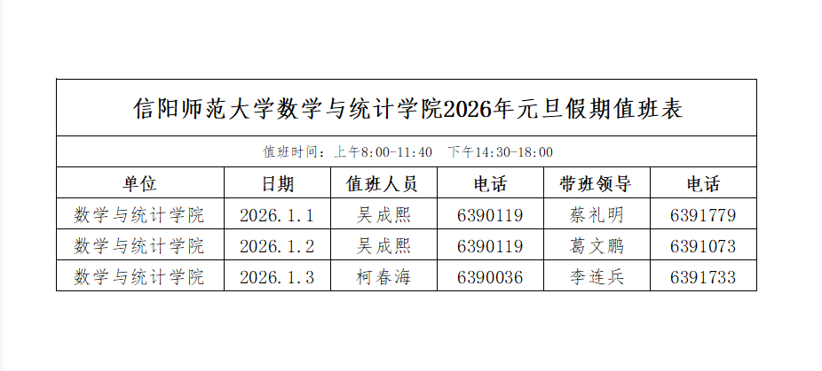 2026年元旦假期值班表