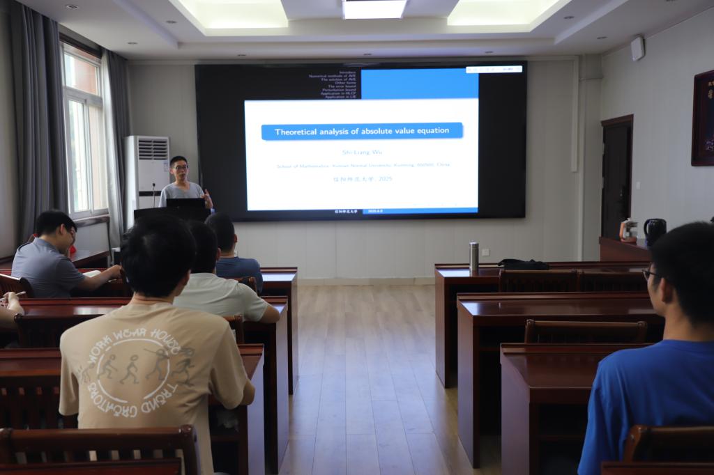 6月8日下午,应bevictor韦德国际邀请,云南师范大学吴世良教授在数学楼315会议室作了题为 Theoretical analysis of absolute value equation》的学术报告。报告会由计算数学方向带头人李世顺教授主持,部分教师及研究生参加了此次报告会。