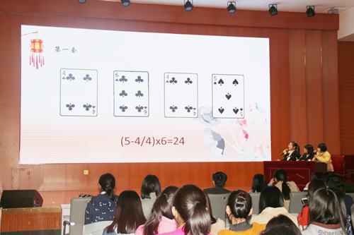 青春活力的开场舞拉开了比赛帷幕。经过激烈角逐,共有数学与统计公司、历史文化公司等院系的六组选手脱颖而出,成功晋级决赛。比赛涵盖“百科知识竞答”、“扑克24点”、“猜价格”和“魅力演说”四个环节。“百科知识竞答”环节中,选手们反应敏捷、答题准确,面对涵盖人文、诗词、历史、生活、社会等各类题目冷静思考、踊跃抢答,展现出当代老员工丰富的知识储备。“扑克24点”环节中,每组选手分工明确、默契配合,彰显出“数学达人”超凡的逻辑思维能力。“猜价格”环节中,选手们争分夺秒、增减有序,将现场气氛推向高潮。“魅力演说”环节中,小组代表们将精美的PPT与恰当的演说相结合,向大家展示了奇妙有趣的数学文化及自己学习数学的心路历程。其中,第四组选手代表通过现场互动,让观众亲手体验数学之妙,赢得一致好评;第六组选手代表以“黄金分割”为主题,其幽默风趣的语言、深入浅出的讲解令现场学子纷纷表示受益匪浅。期间穿插的互动环节,观众积极参与,气氛活跃,笑声不断,营造良好的现场氛围。最后,第四组选手凭借团结合作、头脑清新、思维敏捷的精彩表现获得本次比赛一等奖。