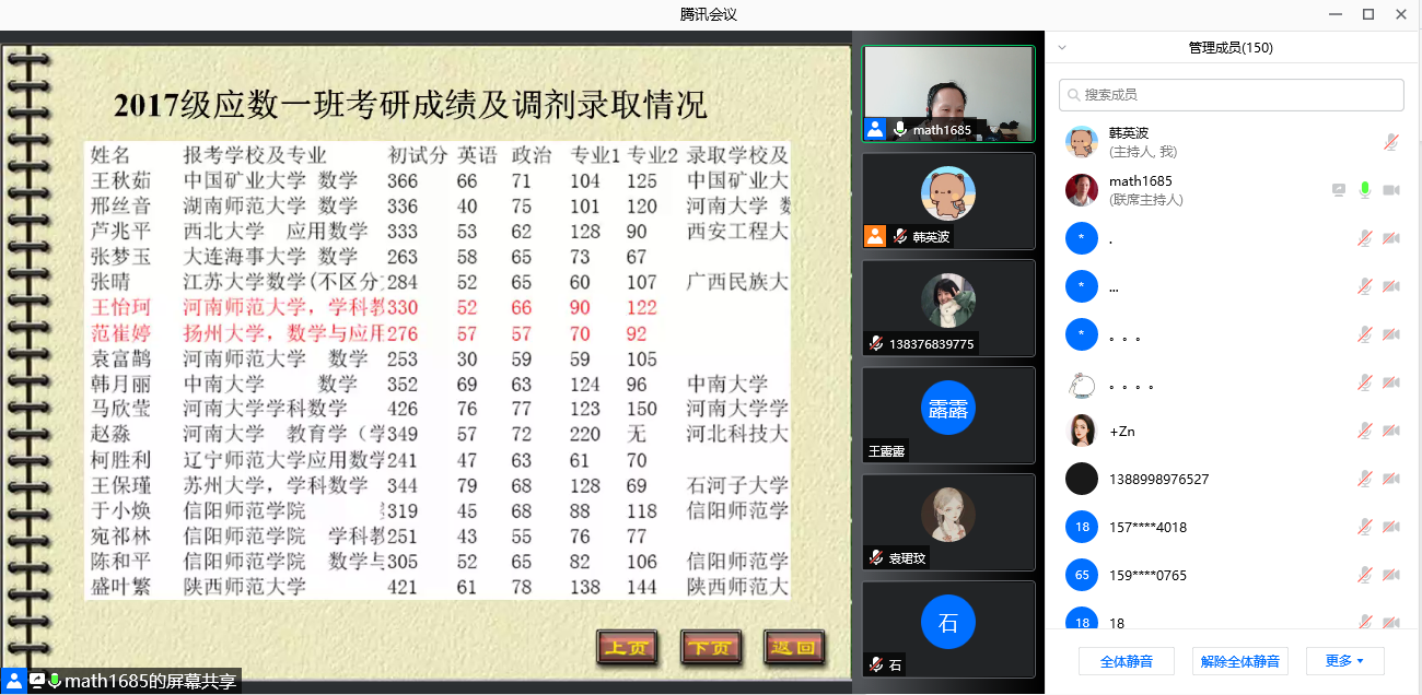 为了进一步提高公司2018级员工的考研热情,增强员工报考重点大学信心,了解更多考研信息,2021年9月13日15:00-17:00公司邀请张盛祝老师通过腾讯会议为大四员工做一场题为“考研经验与准备策略分析”线上辅导交流会。本次交流会由副经理韩英波主持。