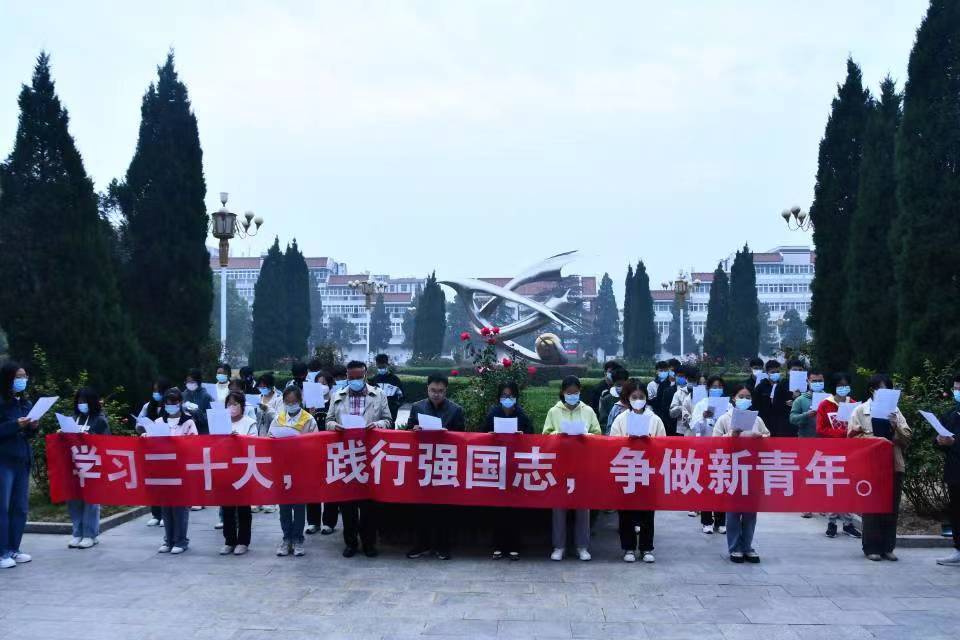 活动在全场师生《没有共产党就没有新中国》的嘹亮歌声中落下帷幕,同学们纷纷在心愿卡上写下对大学四年的规划与心愿,并在“学习二十大 践行爱国志 争当新青年”的条幅上签名。