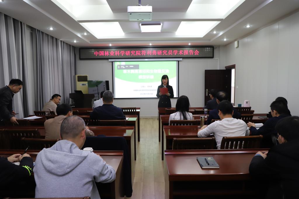 在报告中,符利勇研究员主要介绍了基于遥感技术的生物量反演模型,该模型非线性混合效应部分解决了区域大尺度范围上立地、环境和气候条件对林分生物量随机干扰的影响。此次报告符研究员还详细介绍了无人机获取遥感数据并进行单木分割的技术。最后,符研究员对当前研究进行总结,对老师、同学们的提问做了细致的解答,与会者反响热烈。