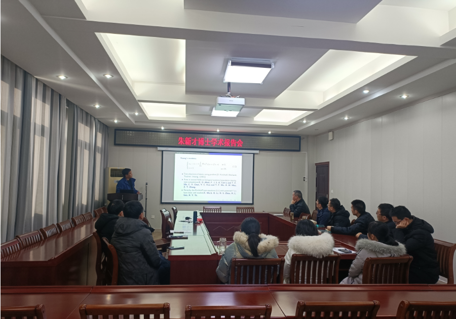 朱新才博士作为第十四期论坛活动的主讲人,作了题为 “Constraint minimizers of Kirchhoff-Schrödinger energy functionals with L2-subcritical perturbation” 的学术报告。朱新才博士首先介绍了Kirchhoff-Schrödinger 型约束质量问题国内外的研究现状以及尚未解决的一些问题;其次,朱新才博士介绍了自己的研究工作“带有双临界指标的 L2 约束问题”,他对非线性项的指标以及系数的取值情况进行了详细归类,并最终证明了相应情况下极小元的存在性与非存在性。此外,朱新才博士还给出了极小元非存在情形下的爆破行为分析。报告结束后,朱博士针对师生们提出的问题给出了详细的解答,并与师生就报告内容进行了热烈的讨论。