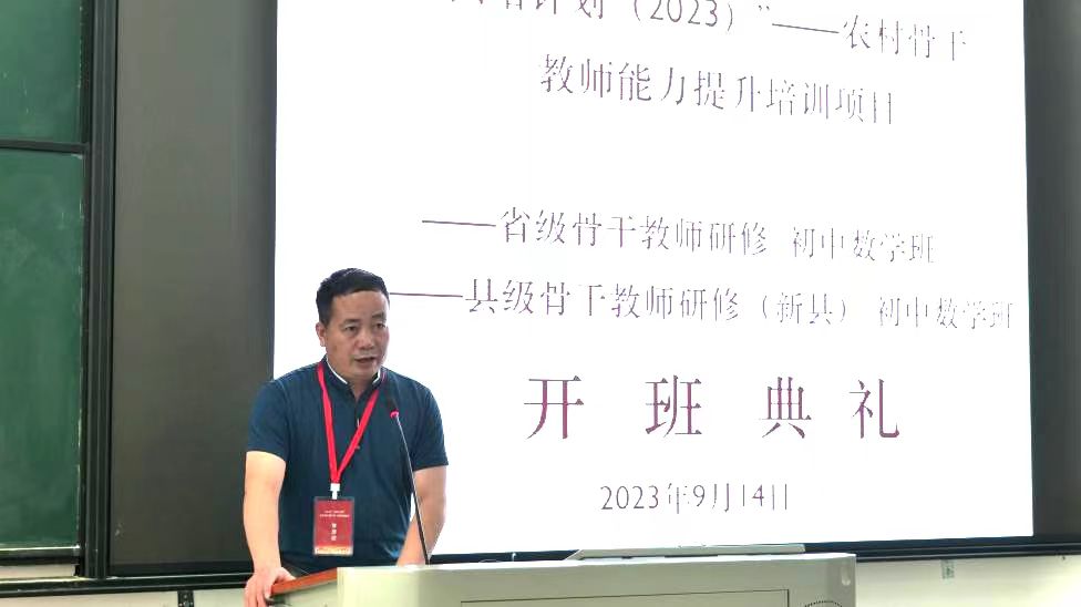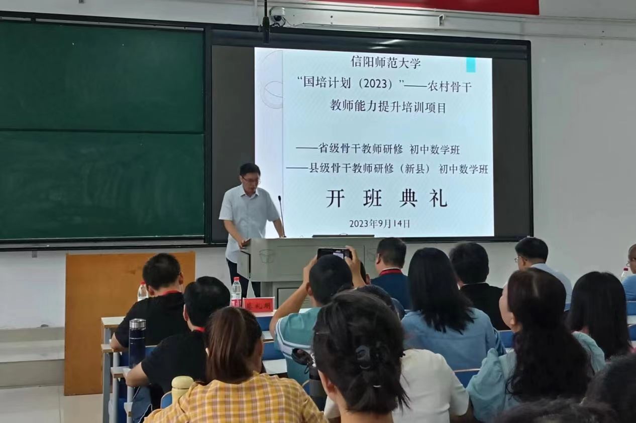 9月14日上午,由公司承办的“国培计划(2023)——农村骨干教师能力提升培训项目省级骨干教师初中数学班、县级骨干教师初中数学班(新县)”开班仪式在社科楼121室举行,拉开了公司2023年国培计划培训工作的帷幕。新县教体局教师发展中心师政股股长邵保华,公司党委书记洪亮、经理蔡礼明,培训班班主任潘虹、韩建新、张萍以及全体参训学员参加了开班仪式。开班仪式由潘虹主持。