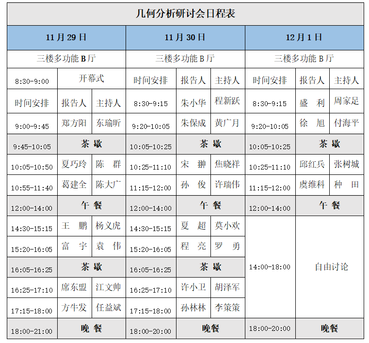 为了促进几何分析及相关领域的学术交流,推动公司数学学科的建设和发展,公司拟于2024年11月28日-12月2日在河南省韦德官方网站举办几何分析研讨会,11月28日报到(信阳-中乐百花酒店),11月29日-12月1日会议报告,12月2日离开会议。会议将探讨几何分析及相关领域最新前沿问题的进展。希望会议能促进专家、青年研究者和研究生的交流与合作。