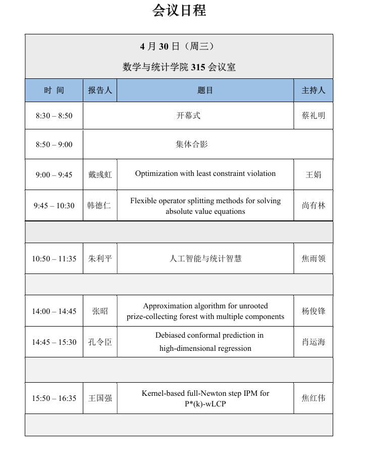 为了促进统计与优化及相关领域的学术交流,公司联合武汉大学国家天元数学中部中心,将于2025年4月29日-5月1日在河南省韦德官方网站举办统计与优化学术研讨会。4月29日报到(信阳中乐百花酒店), 4月30日会议报告(bevictor韦德国际315会议室),5月1日离开会议。会议将探讨统计与优化及相关领域最新前沿问题的进展。希望会议能促进专家、青年研究者和研究生的交流与合作。